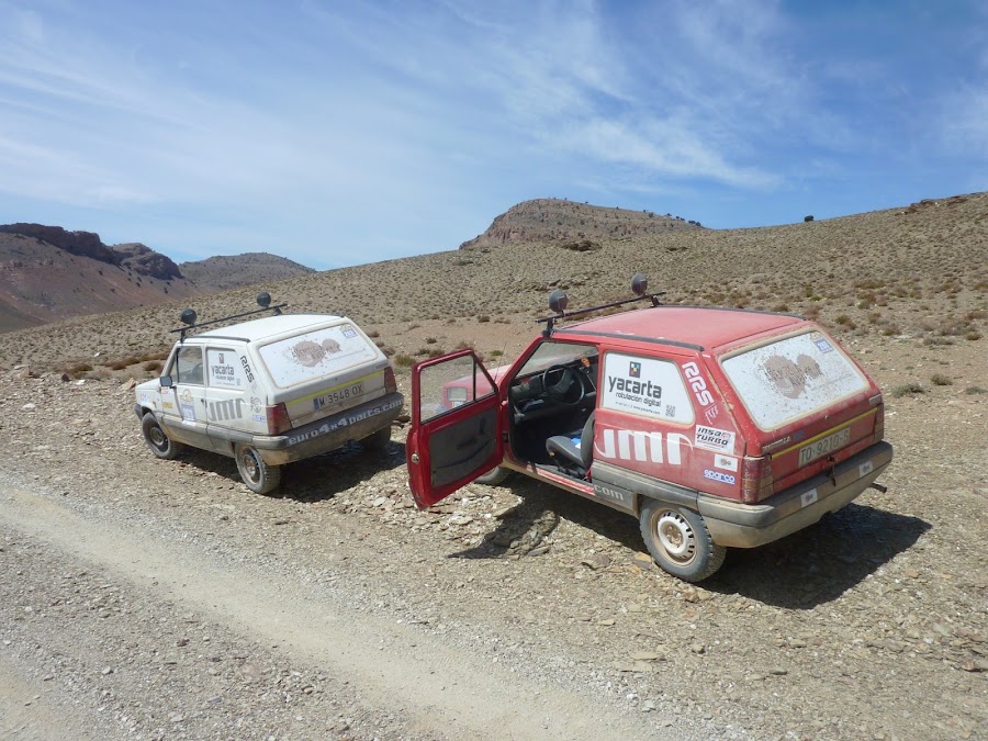 Después de una noche muy fría, volvimos a madrugar para desmontar la tienda e ir al briefing. La tienda estaba congelada de la humedad y las bajas temperaturas, pero eso no impidió el que estuviésemos listos para afrontar la segunda etapa del raid. La etapa de hoy transcurría por pistas en principio no muy complicadas en cuanto a trampas, pero teníamos un problema que podía afectar mucho a los coches de poca potencia como los nuestros. El reto en este caso iba a ser las pronunciadas pendientes y la altura, puesto que teníamos que atravesar el atlas y llegar a los 2130 metros de altitud. Afrontar estas pendientes en tierra, con piedra suelta, a esa altura y con 40 caballos de potencia tiene su aquel, pero no nos íbamos a rendir tan fácilmente.